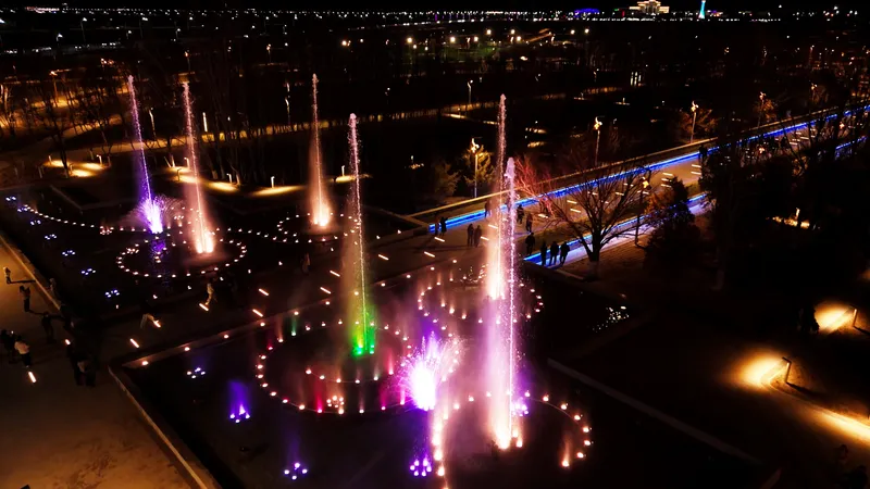 Одними из главных архитектурных акцентов станут три фонтанных комплекса: круглый туманный фонтан, 120-метровый фонтан "Сырдария" и композиция "Өмір терегі" ("Дерево жизни"). Их запуск планируется с наступлением устойчивого теплого сезона.