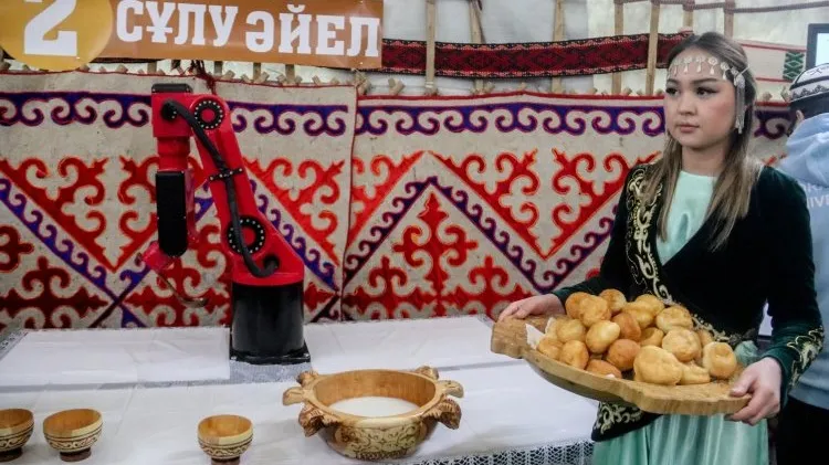 На площадках перед юртами часто можно было увидеть роботов-собак, выделывающих различные трюки, а также устройства, способные выполнять бытовые действия, в том числе наливать кумыс, пишет pavlodarnews.kz.