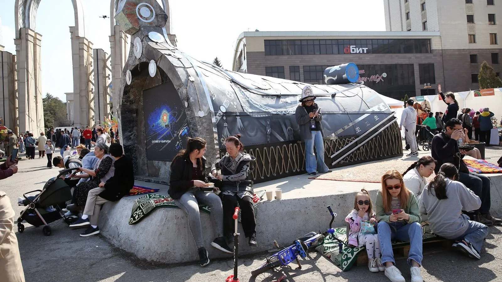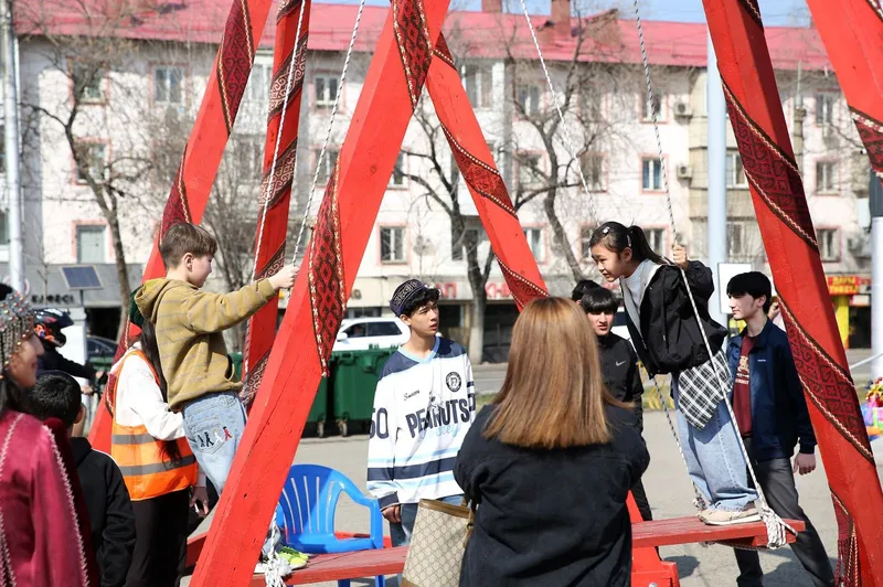 Традиционные элементы праздника также получили экологическую интерпретацию. В установленных юртах проводились мастер-классы по вторичному использованию материалов, где гостей учили давать новую жизнь старым вещам. На площади работали ремесленники, предлагавшие посетителям посуду, украшения и одежду ручной работы. Для любителей активного отдыха установили качели алтыбакан, безопасность на которых обеспечивали волонтеры, а многочисленные точки питания предлагали гостям разнообразные блюда и напитки.