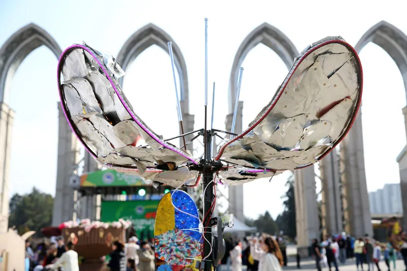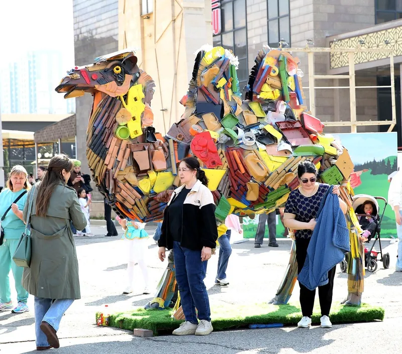 Центральное место в программе заняли арт-объекты, созданные по принципам апсайкла и ресайкла. Особое внимание гостей привлекло символичное седло, полностью собранное из вторичных материалов и обрезков нержавеющей стали, а также выставка авторских тюльпанов, изготовленных из переработанного пластика, целлофана и даже деталей конструктора Lego. Эти работы представил экохаб Евгения Мухамеджанова.
