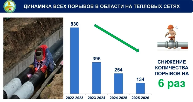 В 2026 году планируется отремонтировать 4,1 км теплосетей, а также реализовать 13 проектов в сферах теплоснабжения, водоснабжения и электроснабжения. Это необходимо для успешного старта следующего отопительного периода.