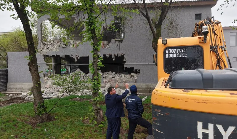 Снос объекта начался сегодня, 9 апреля 2026 года, при участии судебных исполнителей Департамента юстиции города.