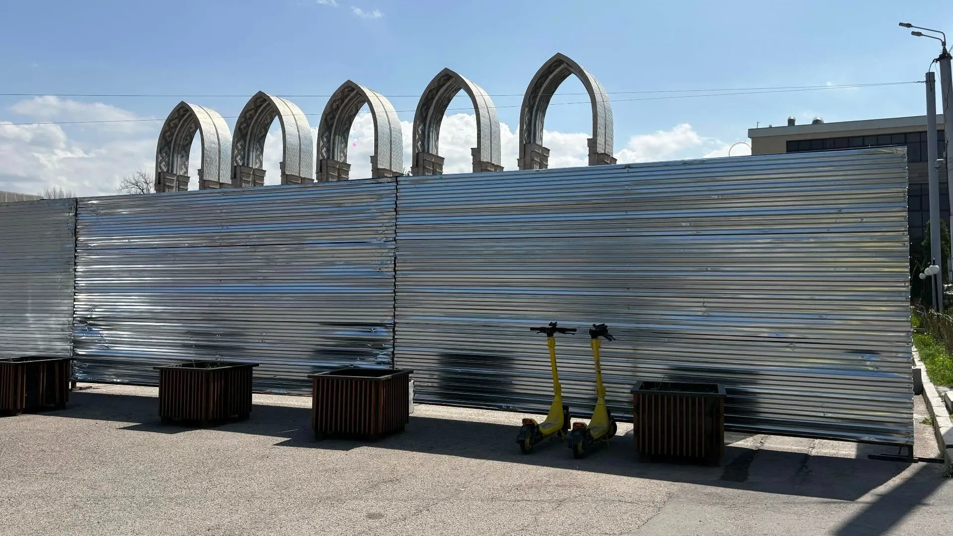 В Алматы площадь перед Казахстанским центром делового сотрудничества (КЦДС) "Атакент" огородили большим забором. В акимате рассказали Zakon.kz, что послужило причиной.