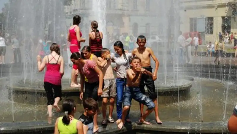 Как отмечается, в ближайшие дни синоптики прогнозируют повышение температуры. И многие горожане во время жары не прочь освежиться, и делают это в городских фонтанах.