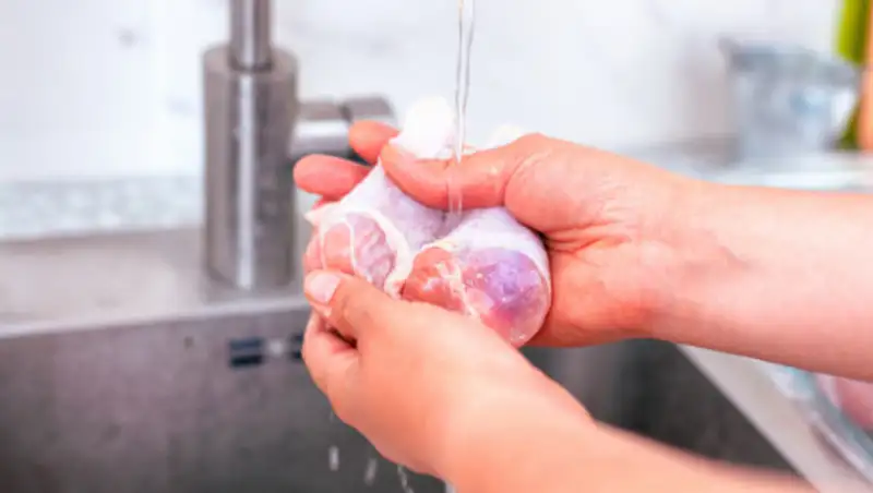 Дело в том, что во время мытья мяса активность бактерий лишь увеличивается, а сам этот процесс лишь помогает их распространению. Большинство микроорганизмов вовсе не уходят в слив раковины, как мы надеемся, а "оседают" на ее стенках, посуде или столешнице. Удалить их оттуда крайне сложно, а зараженные участки впоследствии могут стать причиной серьезных отравлений. Особенно это касается мяса курицы, являющейся источником сальмонеллеза. Вместе с каплями воды сальмонеллы могут разлетаться на расстояние до 1 метра по кухне. Понимаете масштаб опасности?