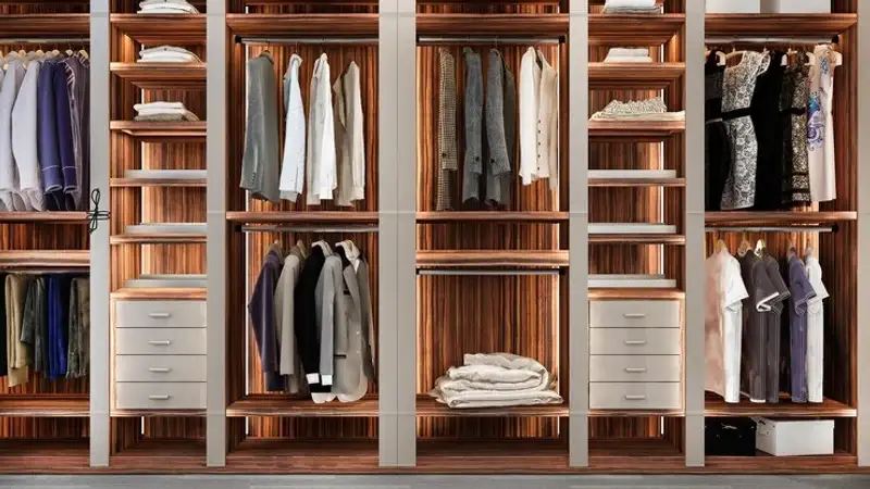 - в гардеробной лучше предусмотреть открытые и закрытые стеллажи;