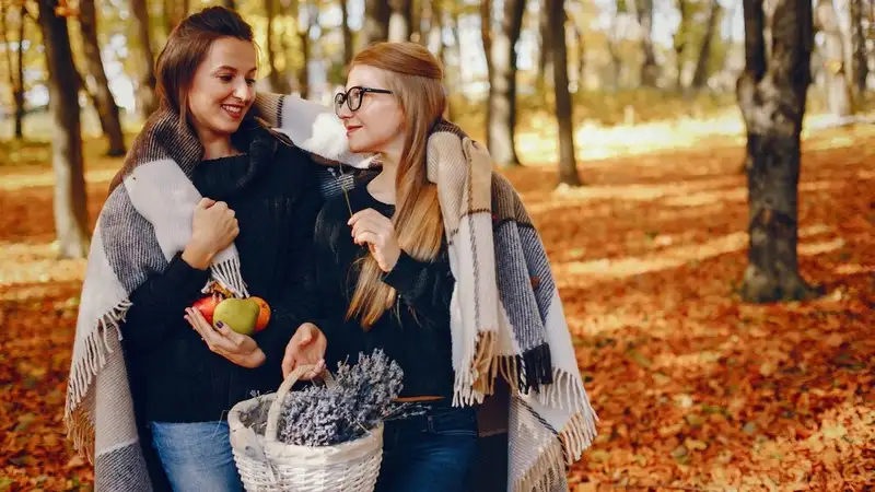 Один из популярных атрибутов для осенних фотосессий – это плед, термос с чаем и корзина с фруктами. К примеру, можно наполнить корзину яблоками – это создаст естественную атмосферу. Не лишним будет устроить небольшое осеннее чаепитие или пикник на траве. Расстелите плед, поставьте корзину с яблоками, добавьте чашки с горячим напитком, пирог или выпечку.