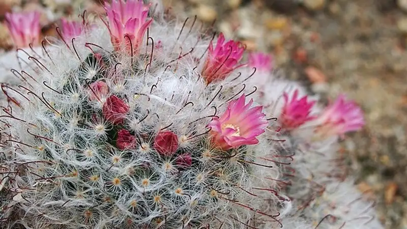 Маммиллярия – самый милый на свете кактус. Растение родом из Мексики, но кто-то из них растет и в Венесуэле. Эти колючие суккуленты покрыты пушистыми белыми волосками, а их цветы немного напоминают ромашки. Они отращивают на себе от 30 до 50 колючек.