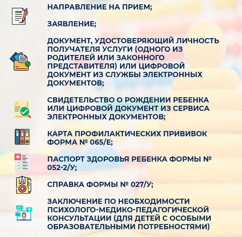 - документ, удостоверяющий личность получателя услуги (одного из родителей или законного представителя), или цифровой документ из службы электронных документов;