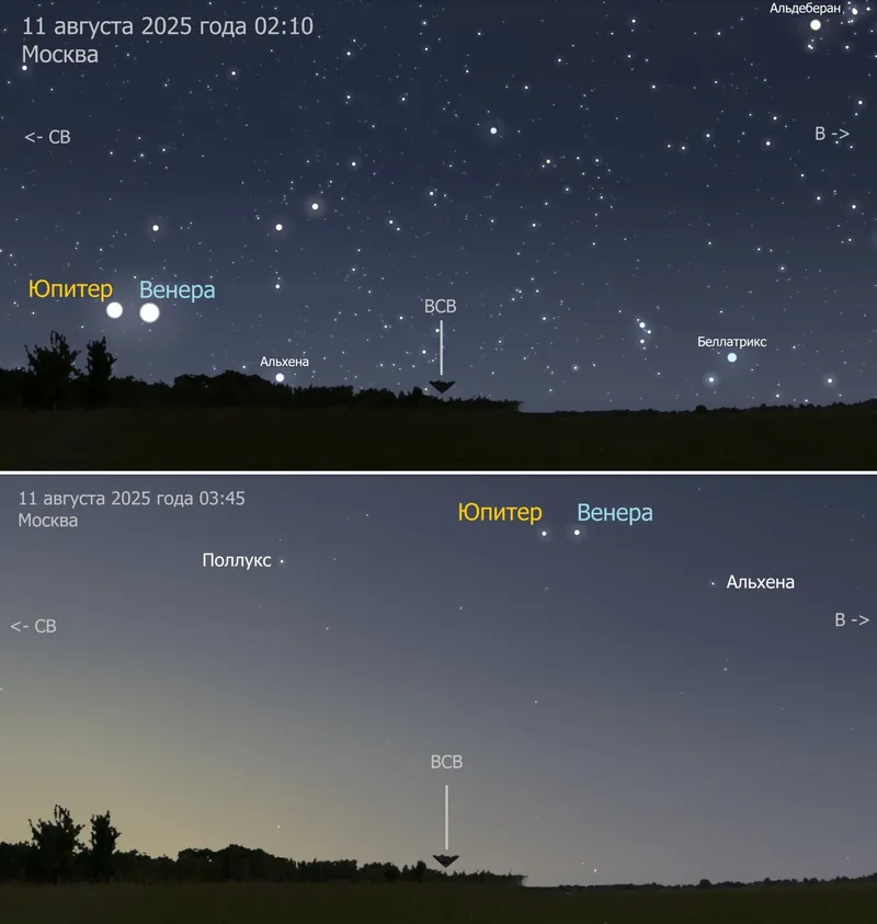 В ночь на 12 августа Венера и Юпитер сблизятся на глазах у землян