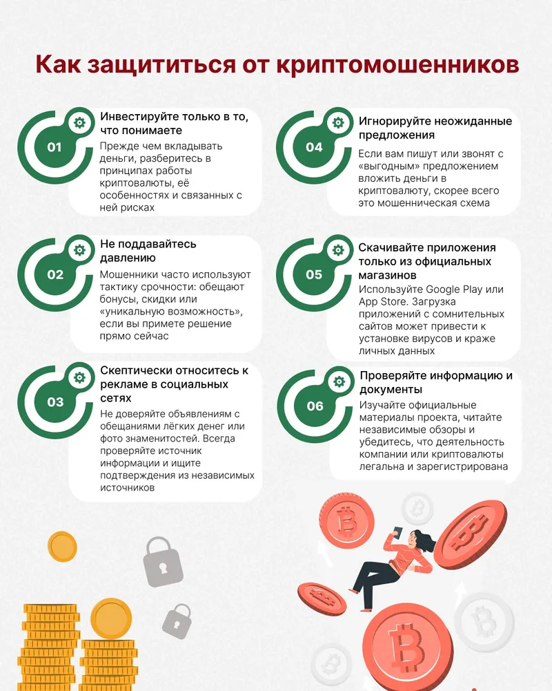 Мошенники создают сайты, электронные письма или сообщения в мессенджерах, маскируясь под официальные сервисы или сайты для работы с криптовалютой. Их основная цель – украсть персональные данные и деньги доверчивых граждан.