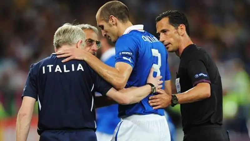 Итальянцы в стартовые минуты довольствовались лишь неудачными забросами мяча вперед на своих нападающих, но им удалось выровнять игру. Балотелли едва ли не первым касанием заработал опасный штрафной, но Пирло пробил в «стенку». Затем лидер итальянской полузащиты дважды подавал очень неприятные для Касильяса угловые. А на исходе 20 минут игры Пранделли поджидала еще одна неприятность: захромал Кьеллини, которого на левом фланге заменил Бальцаретти. Который вскоре сделал опаснейшую подачу, и Касильяс едва не ошибся, подарив мяч Балотелли. Но оказался в итоге расторопнее форварда.