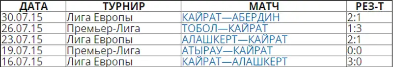 Последние 5 игр «Кайрата»