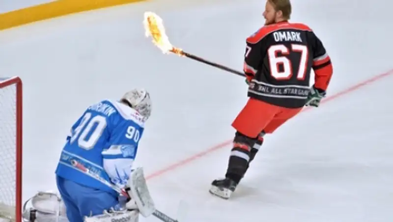 Игрок сборной звезд КХЛ исполнил буллит горящей клюшкой