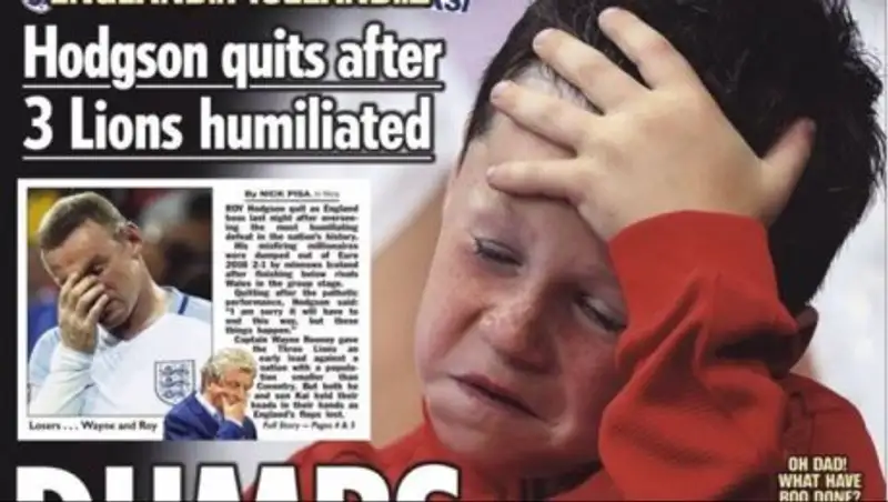 «Убогая сборная Англии стала посмешищем, главный тренер Рой Ходжсон покинул свой пост после того, как команду миллионеров вышвырнули с Евро отважные исландцы», - вот такой длинный заголовок красуется на сайте издания.