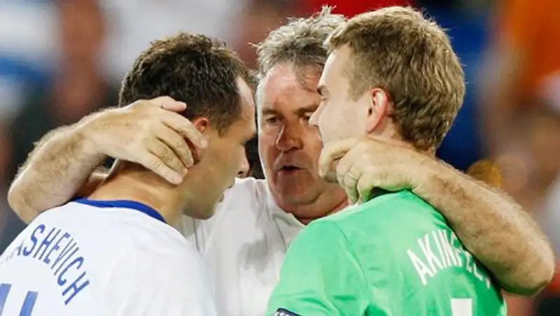 О той истории все свидетели тех событий будут рассказывать своим внукам. А началось всё с чуда, которое помогло нашей сборной отобраться в финальную стадию Евро. Имя тому чуду – сборная Хорватии, обыгравшая в ничего для них не значащем заключительном матче отбора англичан на «Уэмбли» и спровоцировавших цунами любви к своей стране россиян, заваливших в ту ночь хорватское посольство в Москве цветами. На полях Австрии и Швейцарии сказка волшебника Хиддинка продолжилась. После сокрушительного поражения в стартовом туре от испанцев (1:4) Гус Иванович сделал перестановки в обороне, после чего наша сборная расчётливо обыграла действующих чемпионов Европы греков, забила два гола в ворота Швеции, отправив Златана и компанию на родину, а в четвертьфинале поизмывалась над сборной Нидерландов, считавшейся тогда одним из главных фаворитов турнира, оформив, пожалуй, самую яркую победу в истории российского футбола. В полуфинале нас вновь «потоптали» будущие чемпионы, но это уже никого не расстроило – мы взяли бронзу.