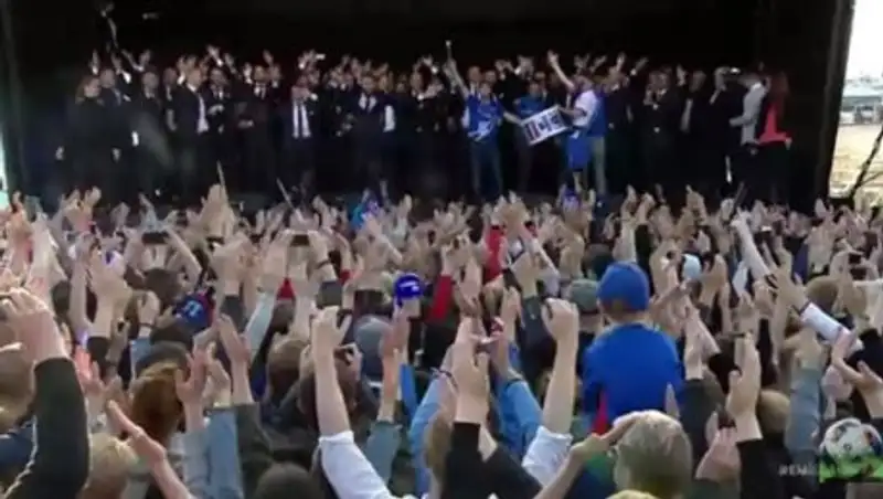 На главной площади города присутствовали, по разным данным, от 10 до 30 тысяч поклонников национальной команды.