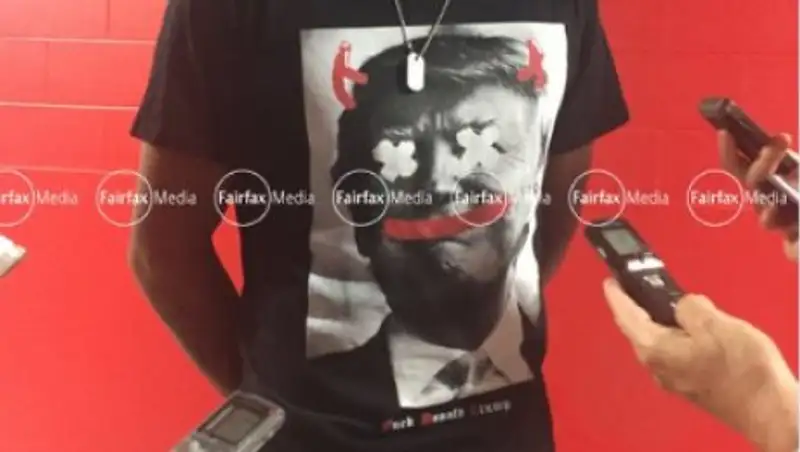Австралийский теннисист Ник Кирьос, занимающий 14-е место в рейтинге Ассоциации теннисистов-профессионалов (ATP), вышел к журналистам в футболке с надписью «К черту Дональда Трампа». Фото было выложено на странице аналитика The New York Times Бена Ротенберга в Twitter.