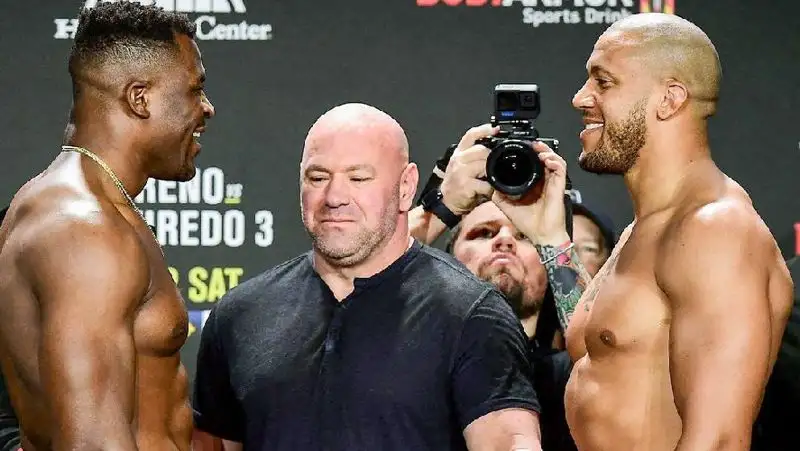 В октагоне встретились действующий чемпион промоушена Фрэнсис Нганну и обладатель временного титула Сирил Ган.