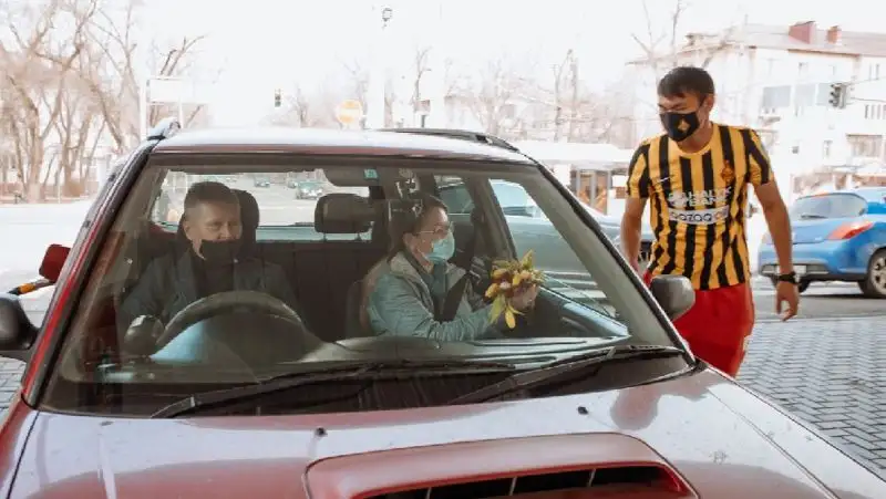 Футболисты взрослой команды в свободное от матчей время проводят встречи с клиентами сети Qazaq Oil, работая там несколько часов кассирами, заправщиками, готовят хот-доги.