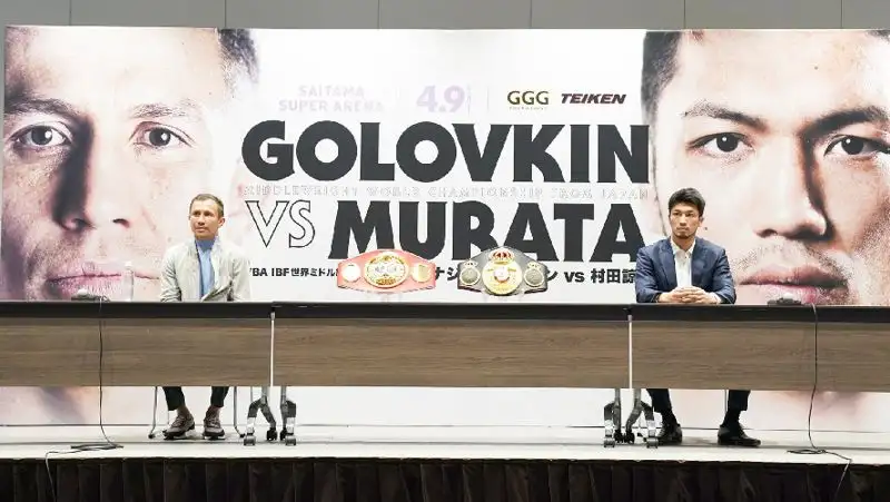 Геннадий Головкин и Риота Мурата впервые вышли вместе к представителям СМИ перед объединительным боем в среднем весе.