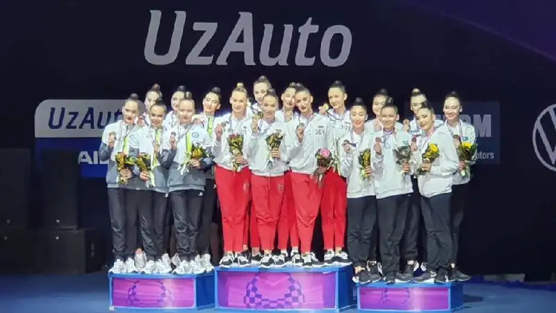 Команда Казахстана в групповых упражнениях по художественной гимнастике выиграла бронзовую медаль в многоборье на Кубке мира в Ташкенте, сообщила Казахстанская федерация гимнастики.