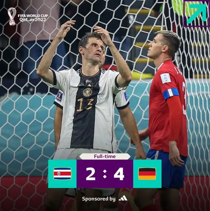 В другой игре сборные Германии и Коста-Рики на двоих забили шесть голов. Бундестим одержала победу со счетом 4:2, но задачи по выходу из группы решить не смогла. Сравнявшись по очкам с Испанией, команда расположилась на третьем месте из-за худшей разницы забитых и пропущенных мячей.