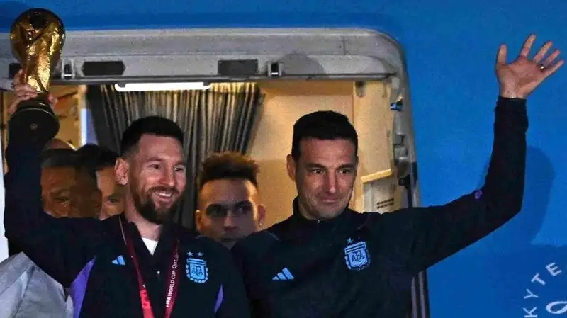 Сборная Аргентины по футболу прилетела в Буэнос-Айрес после триумфа на мировом первенстве 2022 года в Катаре. Первым из авиалайнера вышел лидер аргентинской дружины Лионель Месси с ценным трофеем в руках, сообщает Zakon.kz.