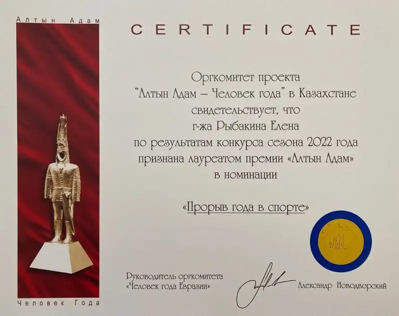 Елена Рыбакина стала лауреатом престижной премии "Алтын Адам"
