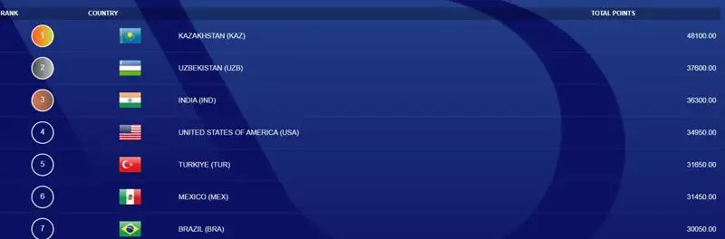International Boxing Association опубликовала обновленную версию рейтингов бойцов во всех весовых категориях на официальном сайте организации. Казахстан занял первую строчку в рейтинге, обогнав Узбекистан, Индию и США. В рейтинге учитываются все 17 весовых категорий.