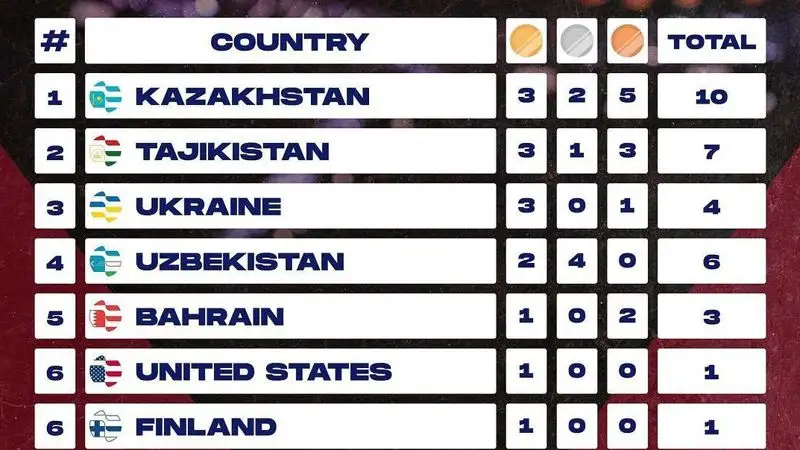 Также в копилке казахстанской команды два "серебра" и три "бронзы", что позволило ей занять первое общекомандное место на Чемпионате мира по ММА.