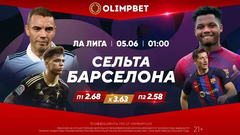 Учитывая большую вероятность того, что каталонцы действительно могут выставить в Виго полурезервный состав, аналитики лучшего букмекера Казахстана Olimpbet не делают "Барселону" явным фаворитом последнего матча сезона. Поставить на исходы поединка можно по следующим коэффициентам: П1 – 2.68, Х – 3.63, П2 – 2.58.