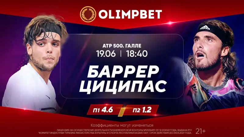 Эксперты Olimpbet считают Циципаса однозначным фаворитом этого матча – П1 – 4.6, П2 – 1.2. Вероятнее всего, он разберется с Баррером за два сета, коэффициент на это – 1.64.