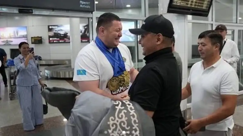Айбара, вернувшегося сегодня с престижных соревнований с триумфом, встретили друзья и коллеги в аэропорту г. Астаны.