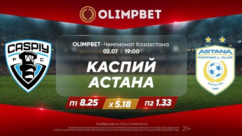 Неделю назад "Астана" уверенно разобралась с "Каспием" в домашних условиях (3:1), а две встречи прошлого года между этими соперниками завершились с общим счетом 7:0 в пользу семикратных чемпионов страны. Безоговорочным фаворитом, по мнению самого популярного букмекера страны, команда Григория Бабаяна выглядит и на этот раз: П1 – 8.25, Х – 5.18, П2 – 1.33.