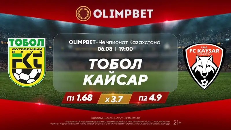 Аналитики Olimpbet сходятся во мнении, что шансы костанайцев на победу в предстоящей встрече заметно выше, чем у гостей из Кызылорды: П1 – 1.68, Х – 3.7, П2 – 4.9. А наиболее вероятный счет матча в Костанае, по версии букмекеров, выигрыш "Тобола" 1:0 с кэфом 5.77.