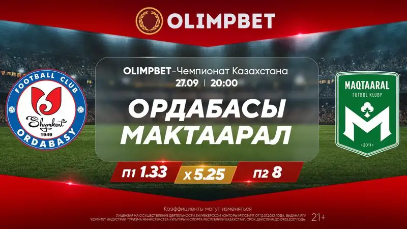 "Ордабасы" (Шымкент) – "Мактаарал" (Туркестанская область). 27 сентября, 20:00