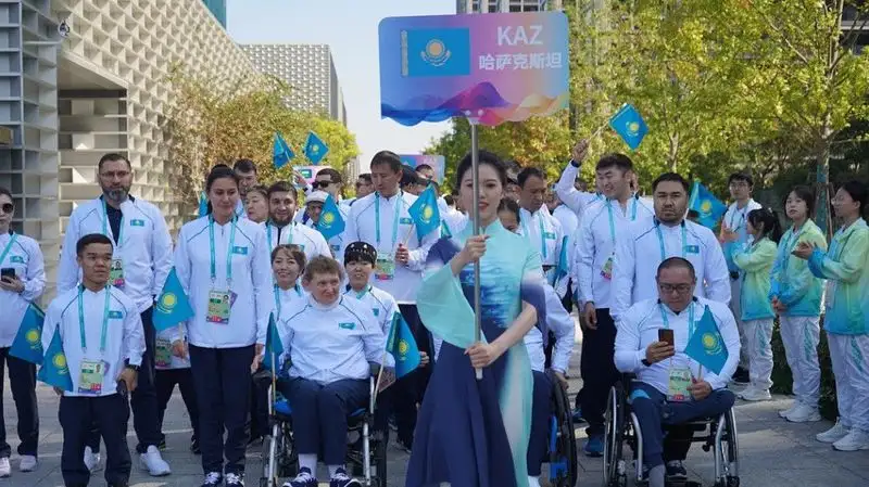 Паралимпийская сборная Казахстана прибыла на Азиатские Параигры в китайский город Ханчжоу. Спортсмены провели торжественную церемонию с поднятием государственного флага, сообщает Zakon.kz.