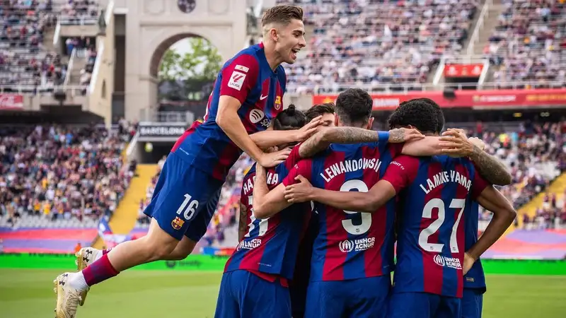 "Сине-гранатовые" открыли счет уже на 3-й минуте, успеха добился польский форвард Роберт Левандовски. После перерыва дублем отметился хавбек Педри.