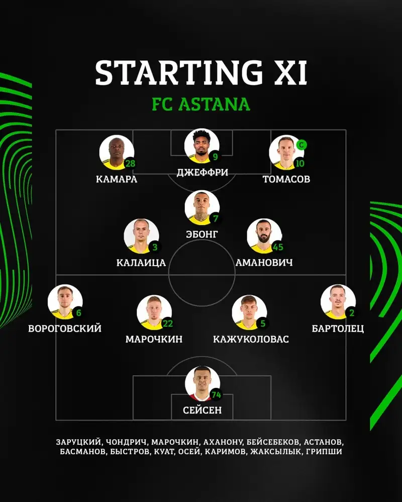 Стартовый состав "Астаны" против "Челси":