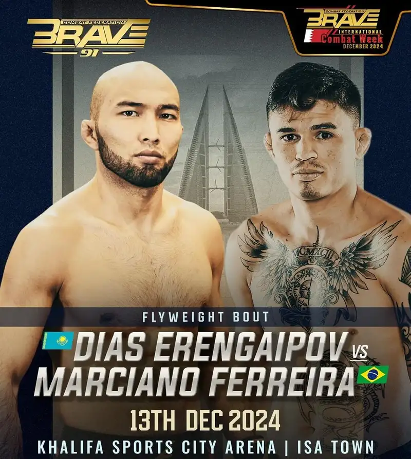 29-летний Еренгаипов ранее владел титулом Naiza, уроженец города Экибастуз. Известен боями в чеченском Akhmat и в казахстанской "Битве Номадов". В Brave CF Еренгаипов победил решением судей, прервав серию соперника из шести успешных боев.