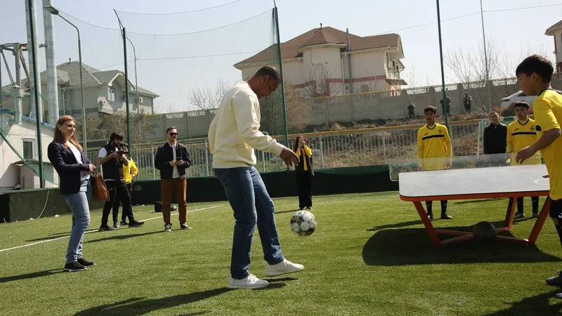 Именитому гостю вручили футболку "Кайрата" под номером 2 в знак признательности за вклад в развитие мирового футбола.