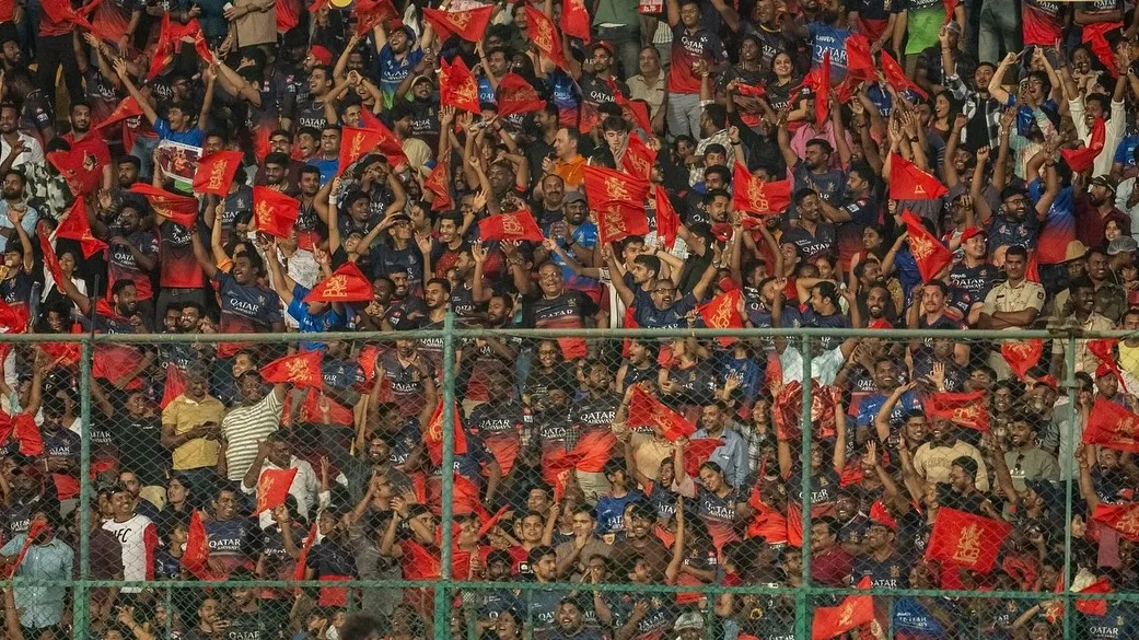 Около местной арены собрались десятки тысяч болельщиков, чтобы отметить первый трофей "Роял Челленджерс" в премьер-лиге Индии.
