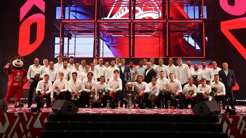 Одним из самых ярких моментов церемонии чествования стало вручение команде именных перстней и миниатюрных копий Кубка Гагарина.