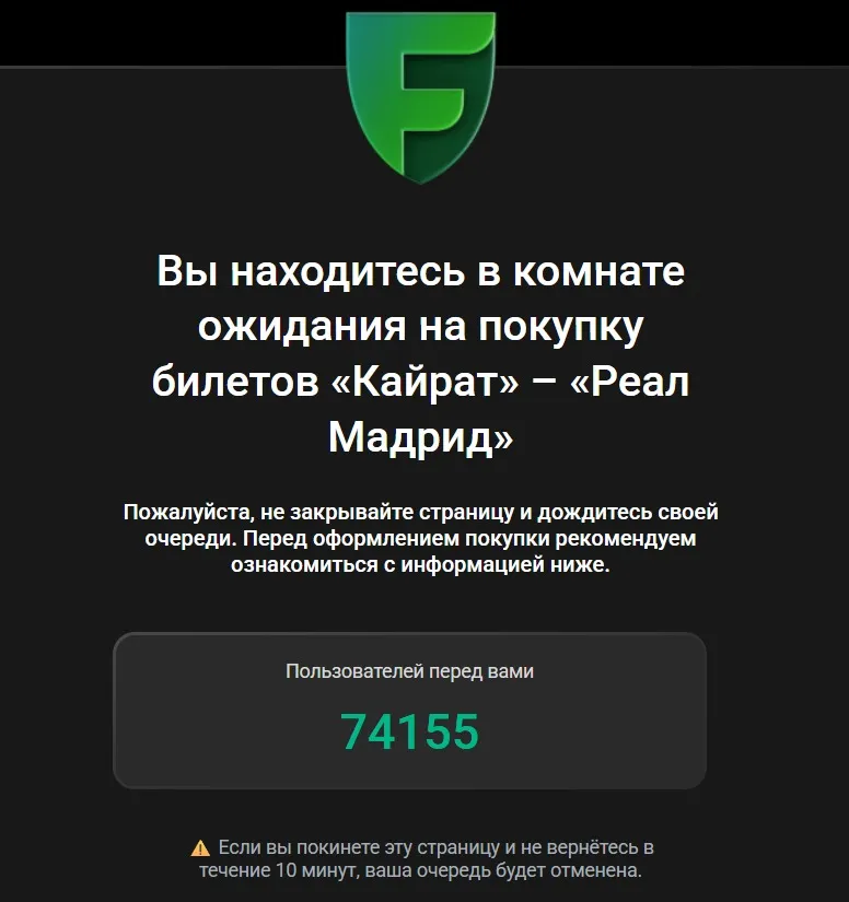 "𝐒𝐎𝐋𝐃 𝐎𝐔𝐓! Все билеты на "Кайрат" – "Реал Мадрид" проданы! Матч общего этапа Лиги чемпионов УЕФА состоится 30 сентября в 21:45 на Центральном стадионе. Вход на территорию будет открыт с 18:45 – за три часа до начала игры. Рекомендуем приходить заранее, чтобы спокойно пройти контроль и избежать скопления очередей".