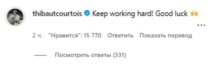 "Продолжай работать усердно! Удачи!" – написал Тибо в комментариях.