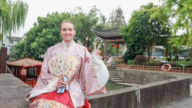 Рыбакина побывала в старинной деревне Зоуматан, где была одета в ханьфу – традиционный китайский наряд, который носили представители народности хань.