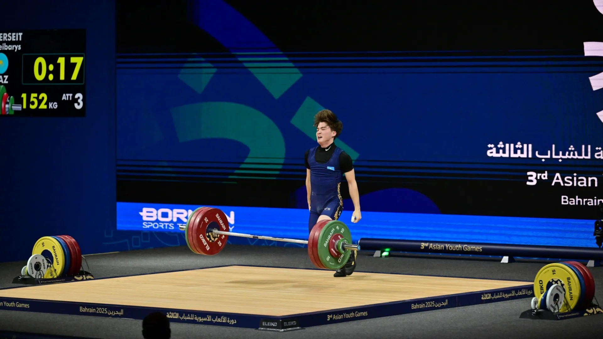 Представитель команды Казахстана по тяжелой атлетике Бейбарыс Ерсеит стал двукратным призером юношеских Азиатских игр в Манаме (Бахрейн). Штангист, выступающий в весе до 65 кг, показал третий результат в "толчке". Он поднял 152 кг, сообщает Zakon.kz.