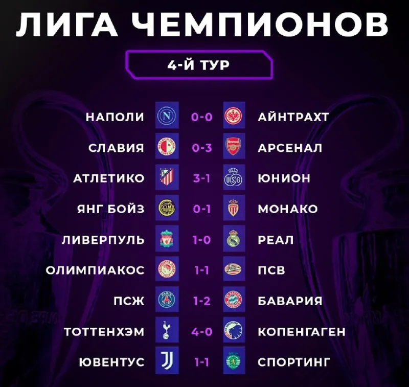 Ночью 5 ноября стали известны итоги первого игрового дня четвертого тура Лиги чемпионов, сообщает Zakon.kz.
