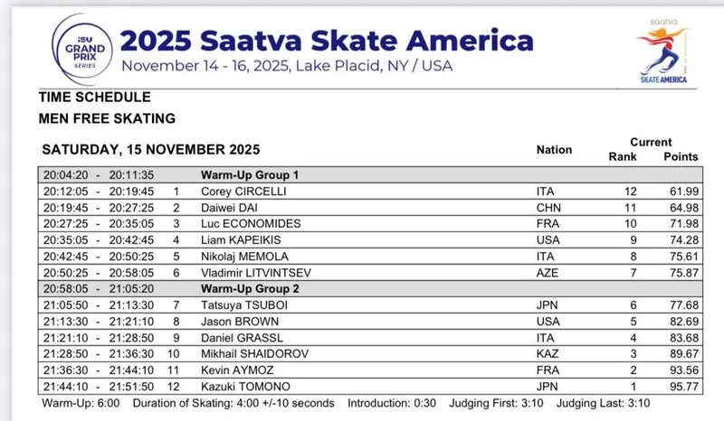 Состязания проходили в Лейк-Плэсиде. Ранее в Чунцине он стал третьим, пропустив вперед еще одного участника нынешнего турнира Skate America 2025 Даниэля Грассля.